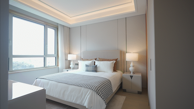 灯光宛如空间的灵魂笔触,灯带沿着天花板的弧形边缘蜿蜒伸展,散发出柔和均匀的光线,照亮整个空间的同时,也营造出一种悬浮的轻盈感。