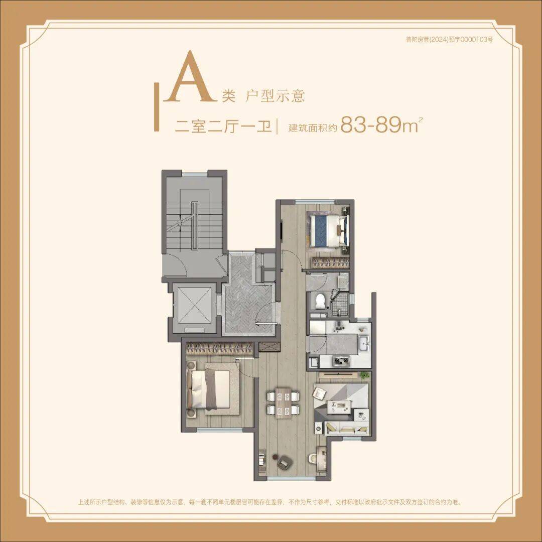 目前,宝华紫薇花园·公园道在售建面约83-89㎡2房及105/159㎡3房,全域精装、类一梯一户。