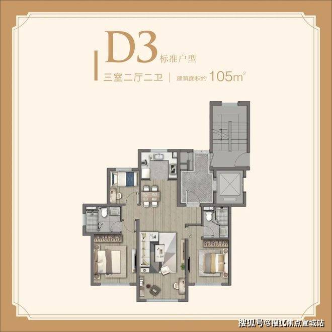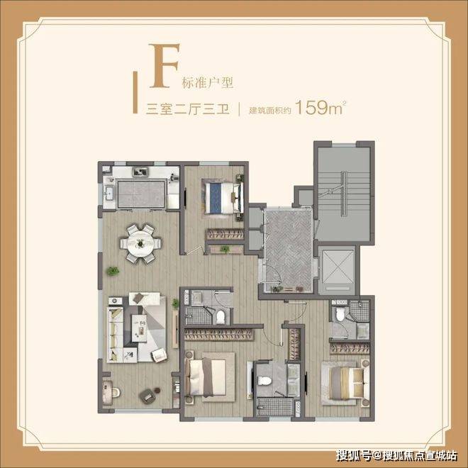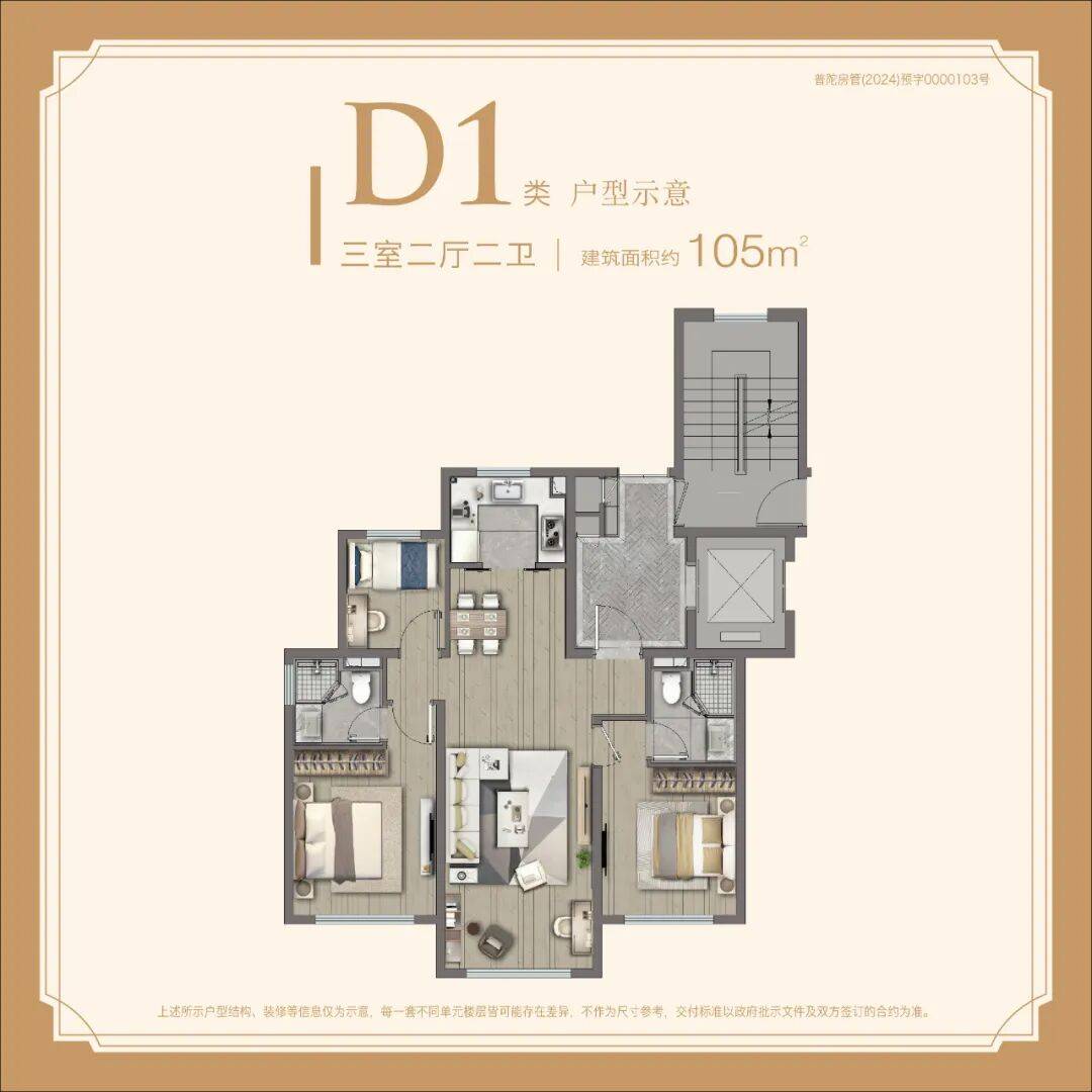 ▶主力在售建面约105㎡3房,中外环鲜有的900-1000万级高品质户型!