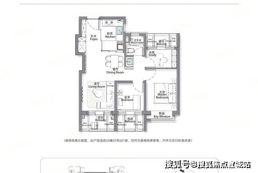 这款户型是刚需家庭的理想选择,三开间朝南设计,南向面宽充足,客厅连接南向阳台,两个卧室均带观景飘窗,采光通风俱佳。户型方正无浪费,动静分区明确,厨房 L 型设计,操作动线流畅;卧室空间阔绰,满足日常居住需求;卫生间干湿分离,清洁便捷。总价约 523 万起,以亲民门槛入驻中环央企品质住区,性价比拉满。
