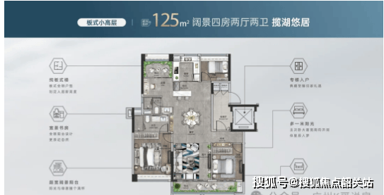 小高层160㎡绝版改善板式四房,作为改善型主力户型,空间开阔舒适,全南向布局,楼间距宽阔,视野无遮挡;客厅采用大横厅设计,连接7米南向景观阳台,瞰景视野极佳;双主套设计,满足三代同堂或二胎家庭的居住需求,保障家庭成员的居住隐私;部分户型配有270°天幕式L型景观阳台,站在阳台可极目远眺,享受约10公里的无遮挡视野,体验极致景观享受。