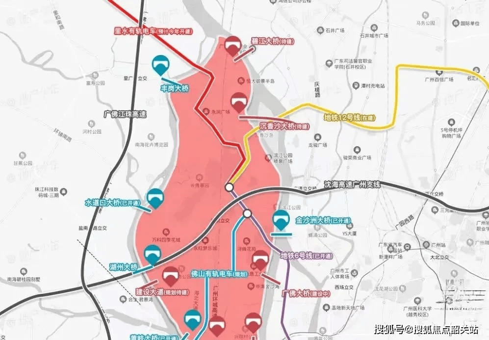 交通配套方面,项目周边交通网络不断完善,多维出行方式可供选择。轨道交通上,广州地铁12号线号线金沙洲段的拥挤问题,大大缩短了前往白云新城的通勤时间;规划中的沉香大桥目前处于项目环评和鹭鸟生态监测阶段,建成后将进一步提升区域交通通达性。