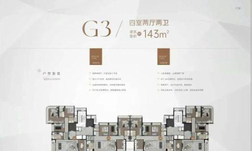楼栋结构方面,整体规划4栋9—17层小高层住宅与18栋4—6层叠院式洋房产品。产品户型均为约143平方米的大平层或叠墅体系,其中小高层采用两梯两户叠院采用专梯专户形式,具备较强的私密性与空间独立性。