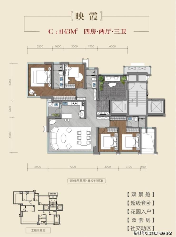 旗舰配置:独立家政间、双主卧套房,精装嵌入地暖、新风系统,实得面积超200㎡。