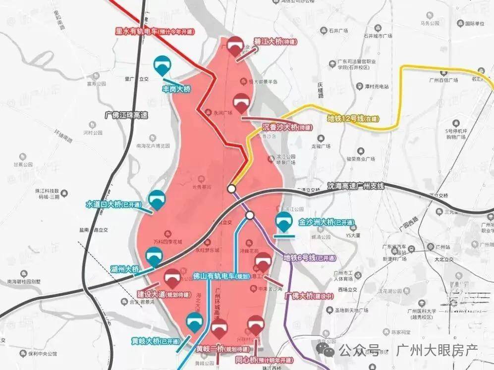 金沙洲的区位,其实都还行,横跨广州白云区和佛山南海区,临近荔湾,和广州的主城区相隔不远,尤其是广钢新城、白鹅潭、白云新城这些,对于不少人来看,这样的距离,是符合通勤距离的。