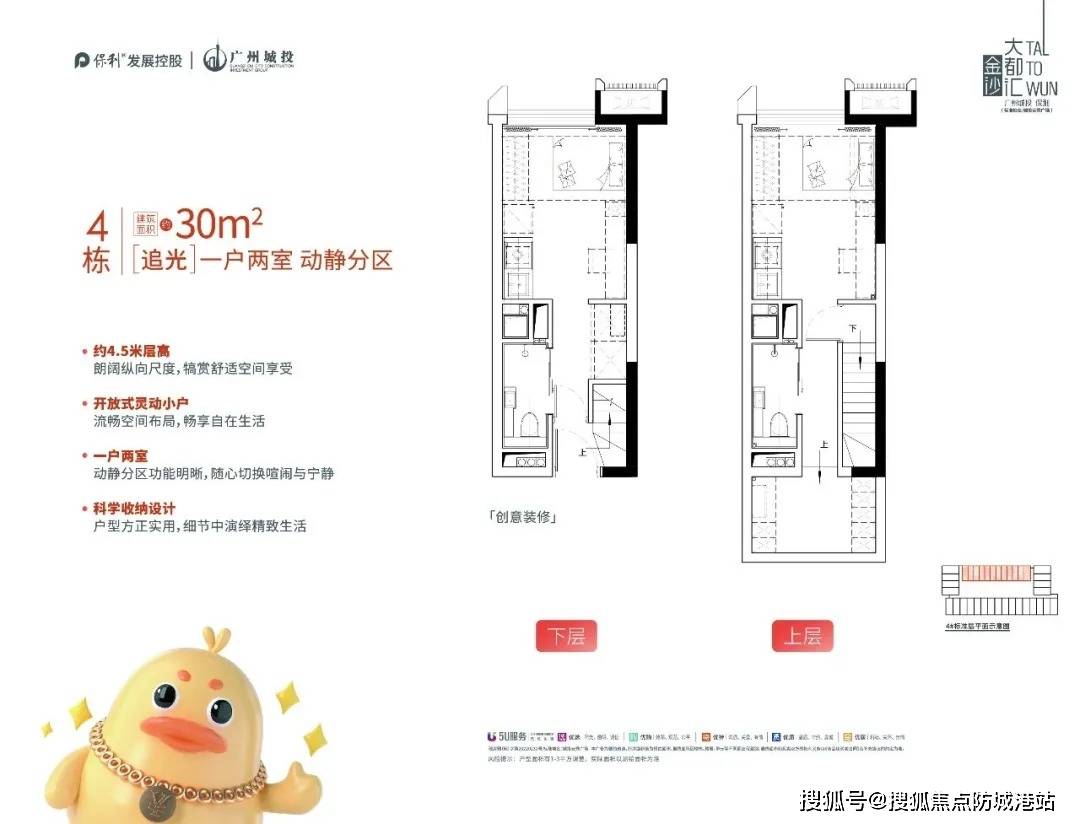 在有限的空间里创造无限的可能,是保利金沙大都汇户型设计的核心理念。项目主推建面约30-42㎡的复式公寓,层高约4.5米,通过巧妙的空间布局,实现了“买一层送一层”的超值体验。这种双钥匙复式设计,上下两层可独立入户,实行分水表分电表管理,真正做到了“买一租二”。无论是用于自住,还是用于投资,都能满足不同场景下的多样化需求,让每一平方米都发挥出最大的价值。