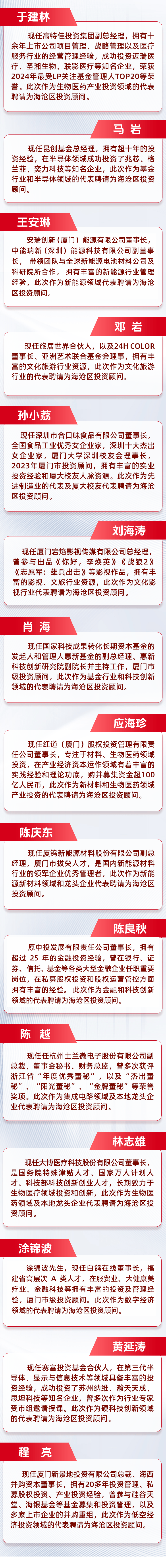 海沧区方面表示:区域经济的高质量发展,离不开专业、高效的投资顾问团队的鼎力支持,15位“海沧代言人”的加入,将为海沧区的投资工作注入新的活力和动力,为区域经济的高质量发展提供强有力的智力支撑和人才保障。