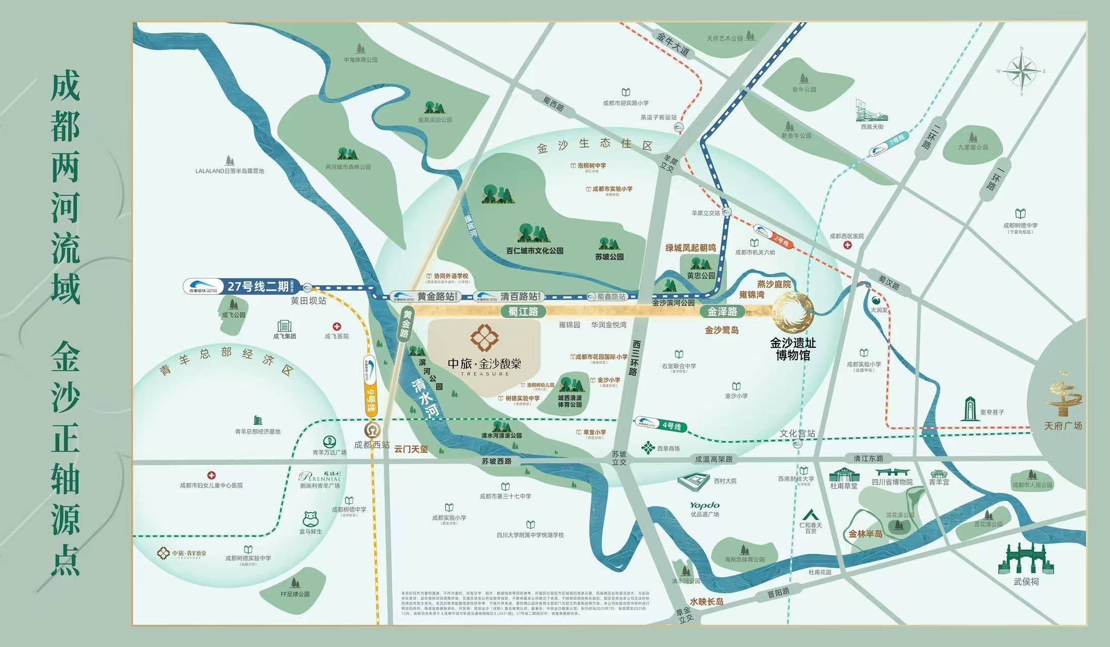 生态:紧邻清水河生态廊道(步行 5 分钟可达),坐拥一线河景资源,周边环绕金沙遗址公园、清波公园等多个休闲空间,生态绿地总面积超千亩,相当于 “家门前的天然氧吧 + 河景长廊”,日常遛弯、健身、带娃场景丰富;